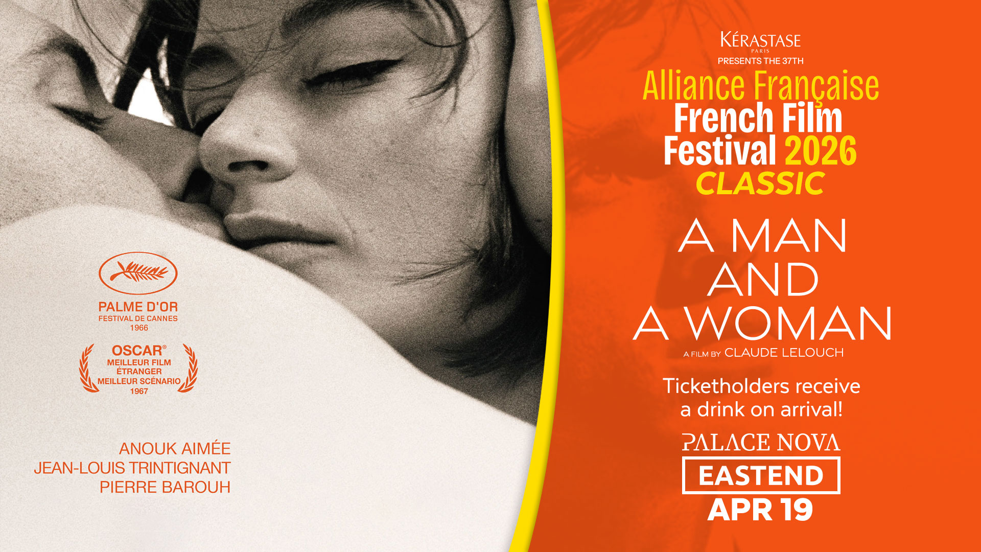 A timeless French romantic drama, A MAN AND A WOMAN remains one of Lelouch’s (At the End of the Day, AF FFF25) most celebrated works, a film of elegance, melancholy, and exquisite emotional clarity that has captivated audiences for generations.