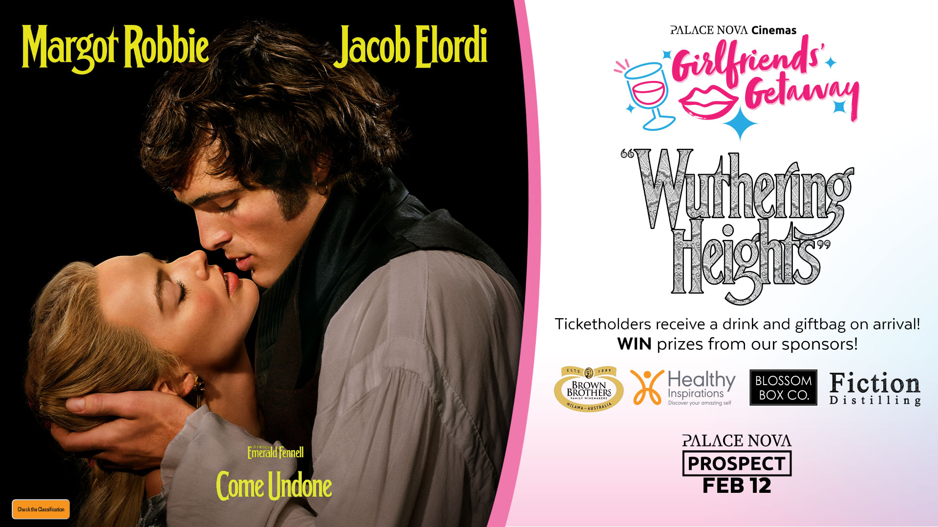 Join us for a very romantic Girlfriends' Getaway with our opening night presentation Wuthering Heights, starring Margot Robbie and Jacob Elordi, based on the classic novel by Emily Brontë.